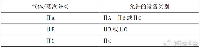 表2 氣體/蒸汽分類與設備類別間的關系